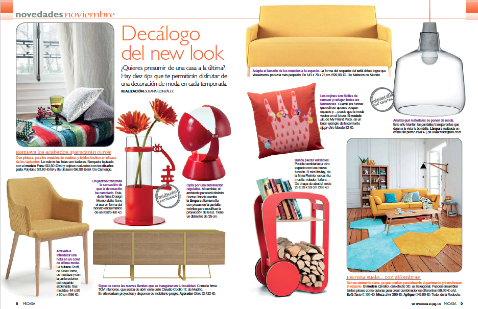 Micasa magazine from Spain wrote about New Trendy Tips to Home Decoration in their november issue (11/2016) written by Susana González. Micasa wrote: